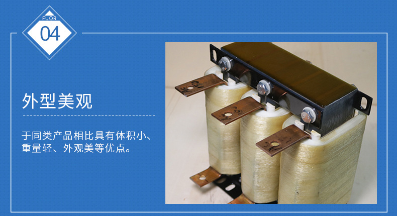 調(diào)諧電抗器在有諧波源設(shè)備的系統(tǒng)中如需發(fā)送功率因數(shù)而裝置電容器,諧波可能導(dǎo)致變壓器和電容器產(chǎn)生共振。為避免諧波共振可在電容器前串聯(lián)一調(diào)諧電抗器。調(diào)諧電抗器組之設(shè)計(jì)頻率必須遠(yuǎn)低于系統(tǒng)的最低階諧波頻率,如此在基本波頻率(50Hz)可補(bǔ)償無功功率,且沒有諧波共振的危險(xiǎn) 。